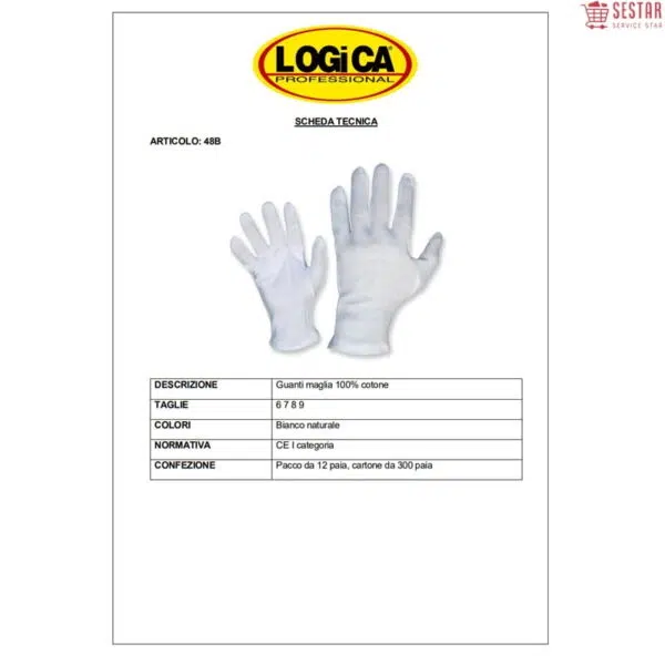Logica Guanti Da Lavoro Bianchi In Cotone 100% 48B