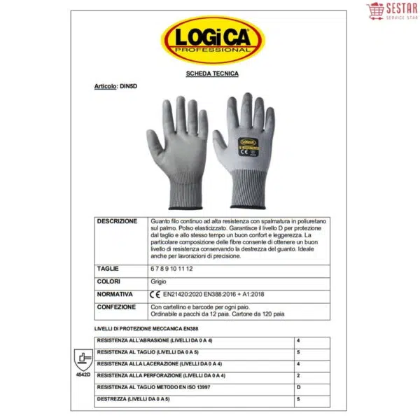 Logica Guanti Da Lavoro Antitaglio Filo Continuo Ad Alta Resistenza Con Spalmatura In Poliuretano Sul Palmo Din5D