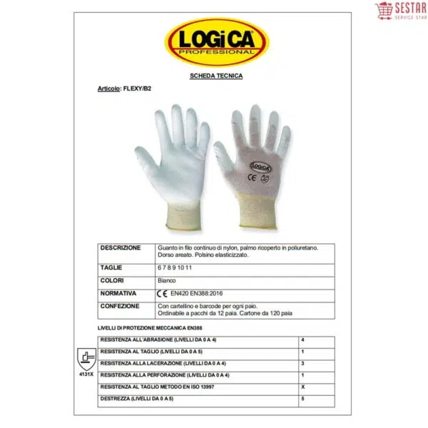Logica Guanti Da Lavoro In Nylon Filo Continuo Con Palmo Ricoperto In Poliuretano Flexy/B2 Logica