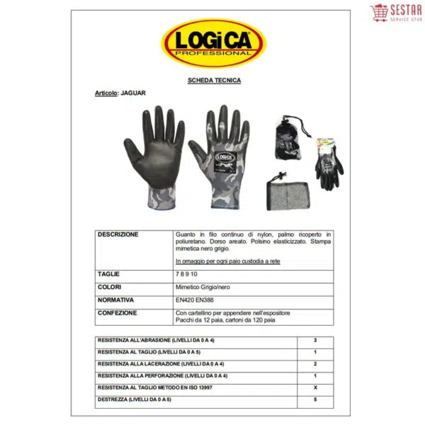 Logica Guanti Da Lavoro In Nylon Filo Continuo Con Palmo Ricoperto In Poliuretano Mimetico Jaguar