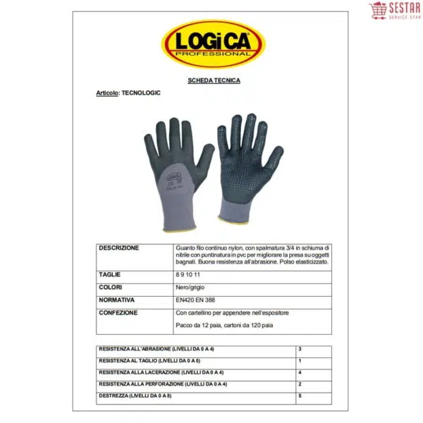 Logica Guanti Da Lavoro In Nylon Filo Continuo Con Spalmatura 3/4 In Schiuma Di Nitrile E Puntinatura In Pvc Tecnologic