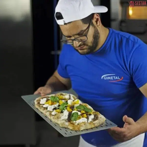 Gi-Metal Linea Azzurra Pala Pinsa Romana Alluminio Rettangolare Forata 40X23 cm Manico 60 cm