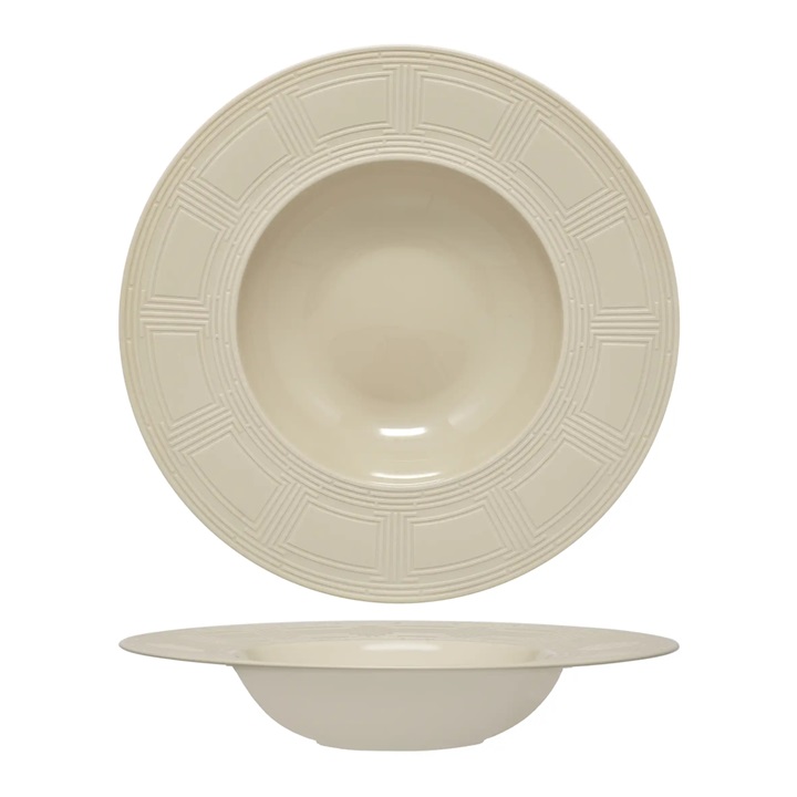 Essentia LABYRINTH BEIGE Piatto Fondo Gourmet In Porcellana Fine, Interno Lucido Esterno Opaco Ø 23cm Interno Ø 13,3cm