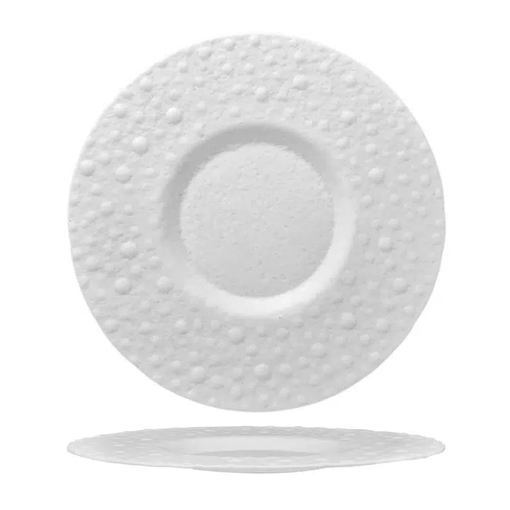 Essentia GIOVE Vetro Bianco Lavorato A Mano Piatto Gourmet Ø 32,5cm Interno 15,8cm