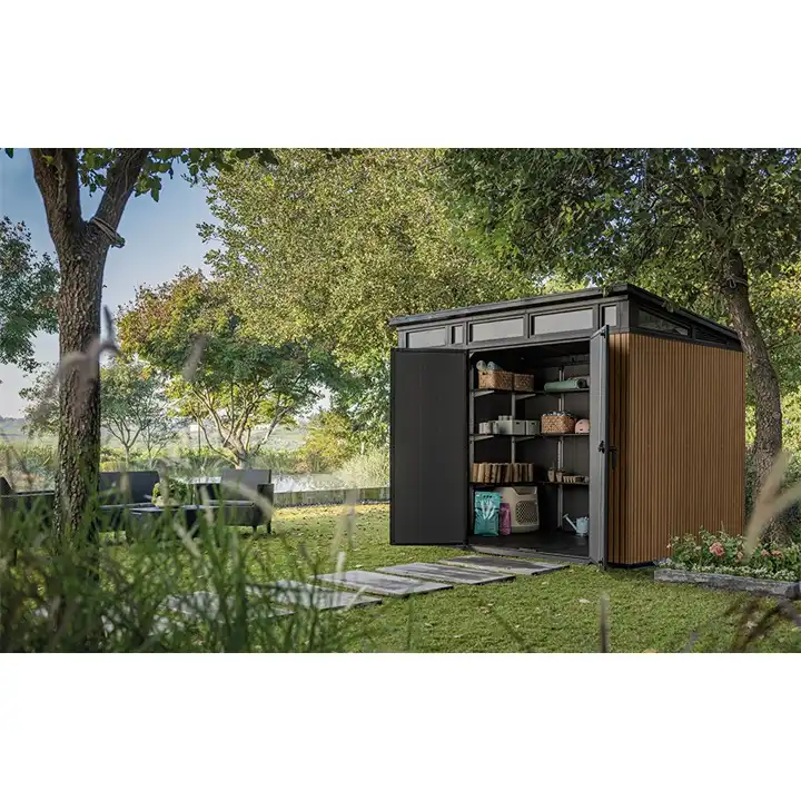 - DESIGN EFFETTO LEGNO: La casetta da giardino Pent Venetian unisce l’eleganza delle doghe veneziane e la finitura effetto legno alla praticità della resina, grazie alla tecnologia Deco Coat che riproduce fedelmente la texture naturale del legno. Ideale per valorizzare ogni spazio esterno con uno stile moderno e ordinato.