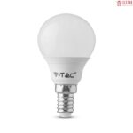 Lampadina LED V-Tac PRO VT-270 con potenza di 7W e attacco E14. Lampadina con tecnologia LED SMD con chip Samsung, forma MiniGlobo P45 in materiale termoplastico e copertura opaca. Fascio luminoso di 180°, flusso luminoso di 600 lm e un rapporto di 85 lm/W. La potenza di 7W è equivalente a 45W di una lampadina a incandescenza.