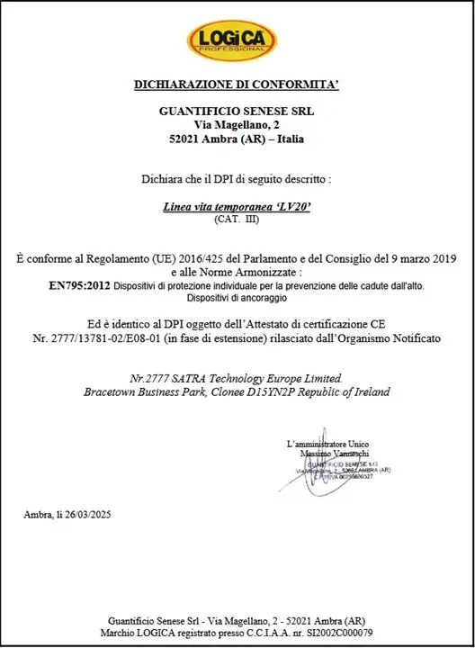 Logica AirPro Lv20 Linea Vita Temporanea Per Ponteggi 20 Mt