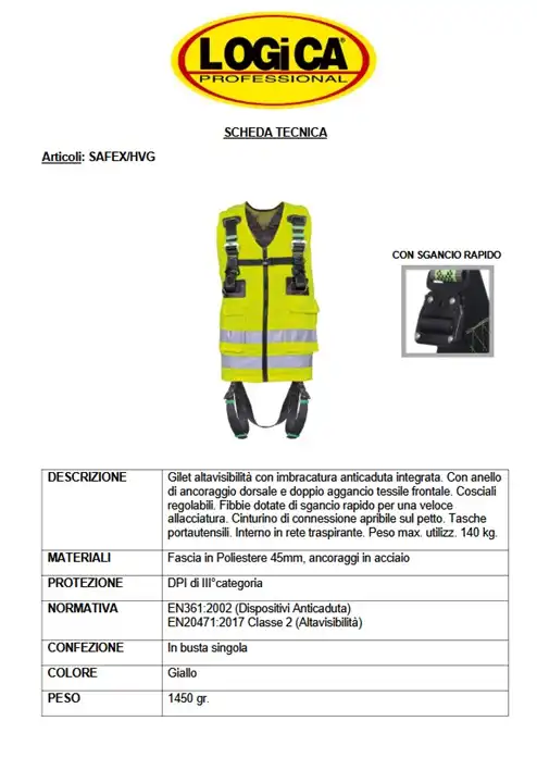 Logica Gilet Safex Alta Visibilità Giallo Con Imbracatura Anticaduta