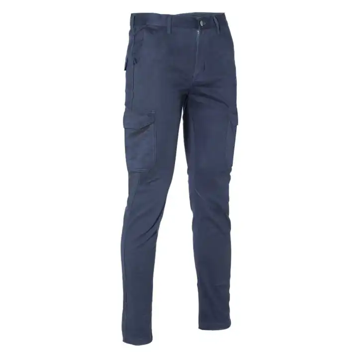 • Pantalone con due tasche laterali a filetto, una dietro e due tasconi sul gambale chiuse con patta