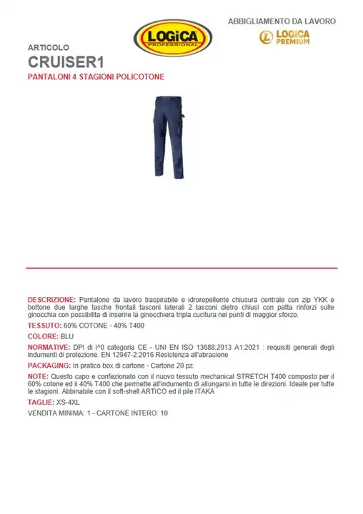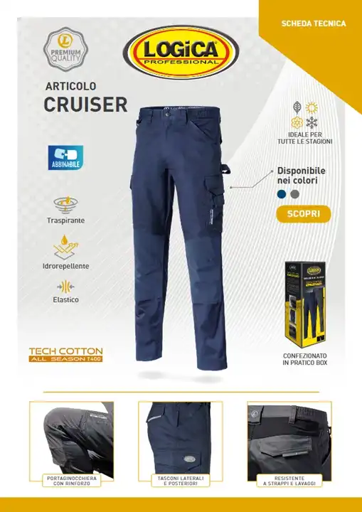 Logica Pantalone CRUISER1 Blu 4 Stagioni Traspirabile, Idrorepellente E Resistente All’Abrasione