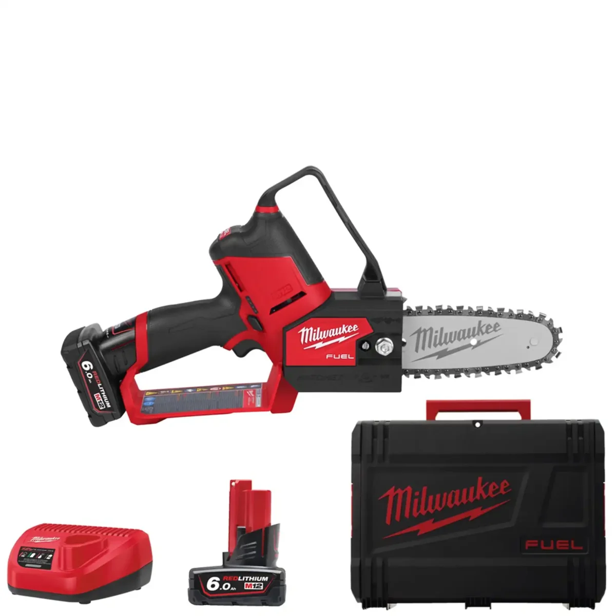 Milwaukee M12 FHS-602X Potatore a Catena a Batteria Brushless Lama / Catena 15 Cm 2 Batterie da 6 Ah Lubrificazione Automatica Mini Elettrosega da potatura M12 FUEL™